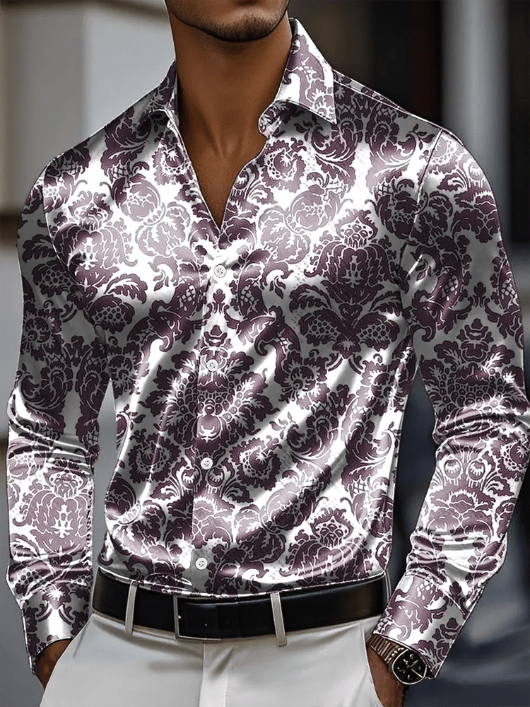 Men's Luxury Romantic Contrast Color Print Long Sleeve Shirt
