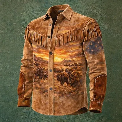 America Flag Sunset Leather Fringe Western Jacket