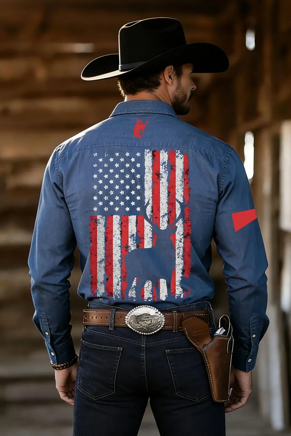 American Flag Deer Print Western Shirt for Men – Patriotic Cowboy Style