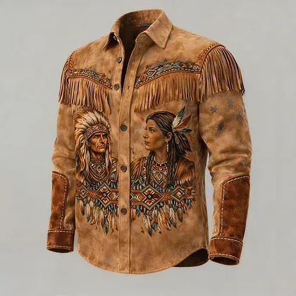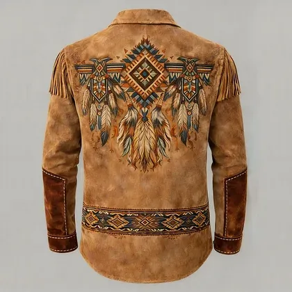 Aztec Native American Feather Leather Fringe Western Jacket