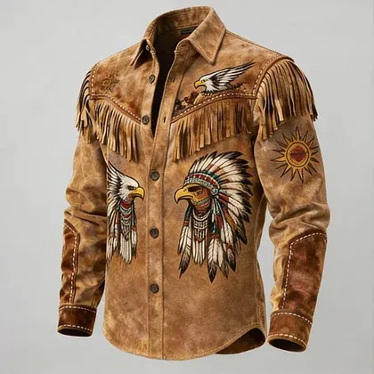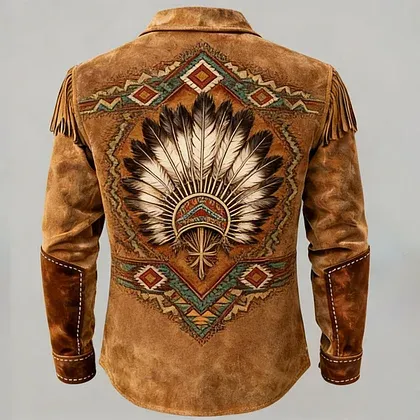 Native American Feather Leather Fringe Western Jacket