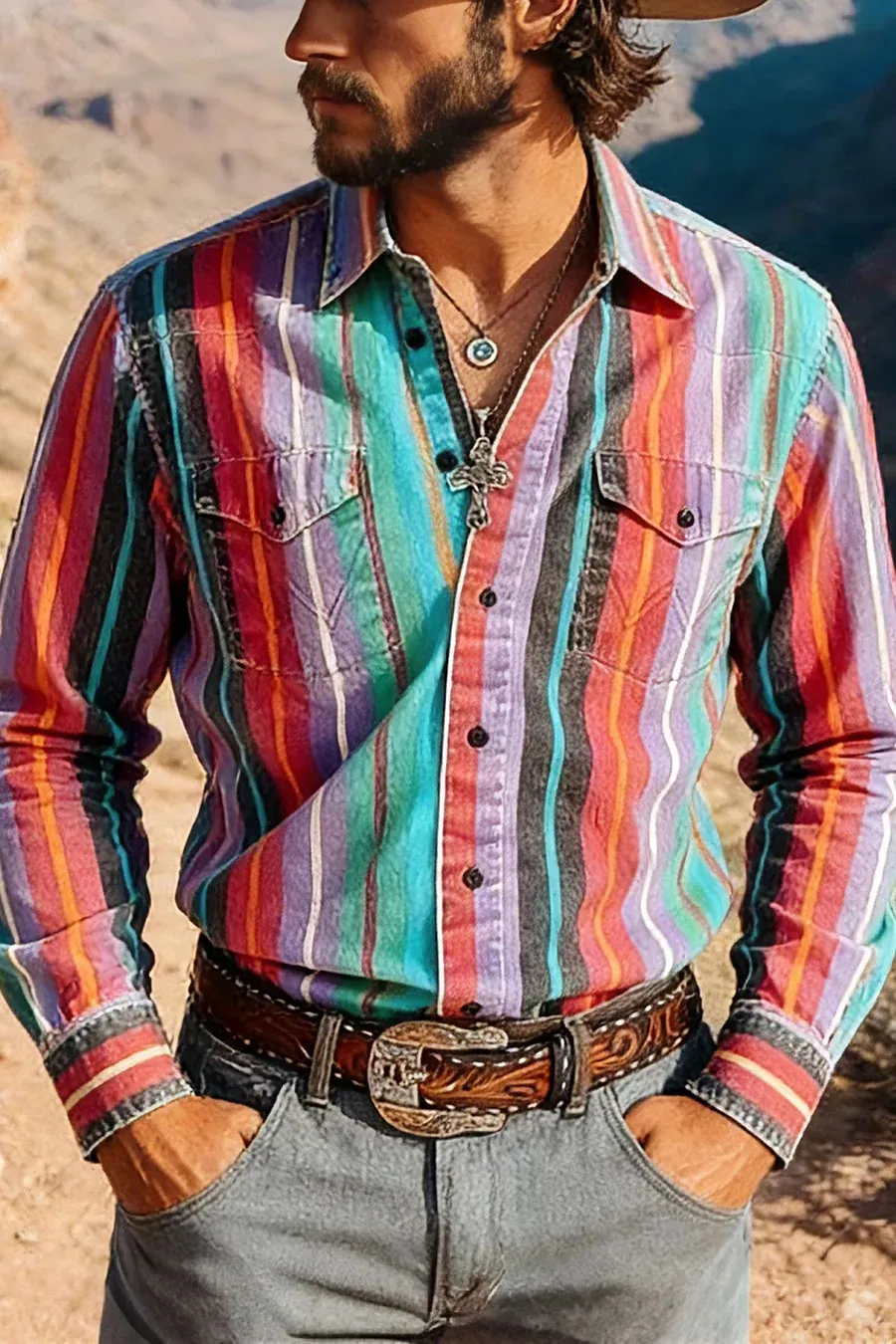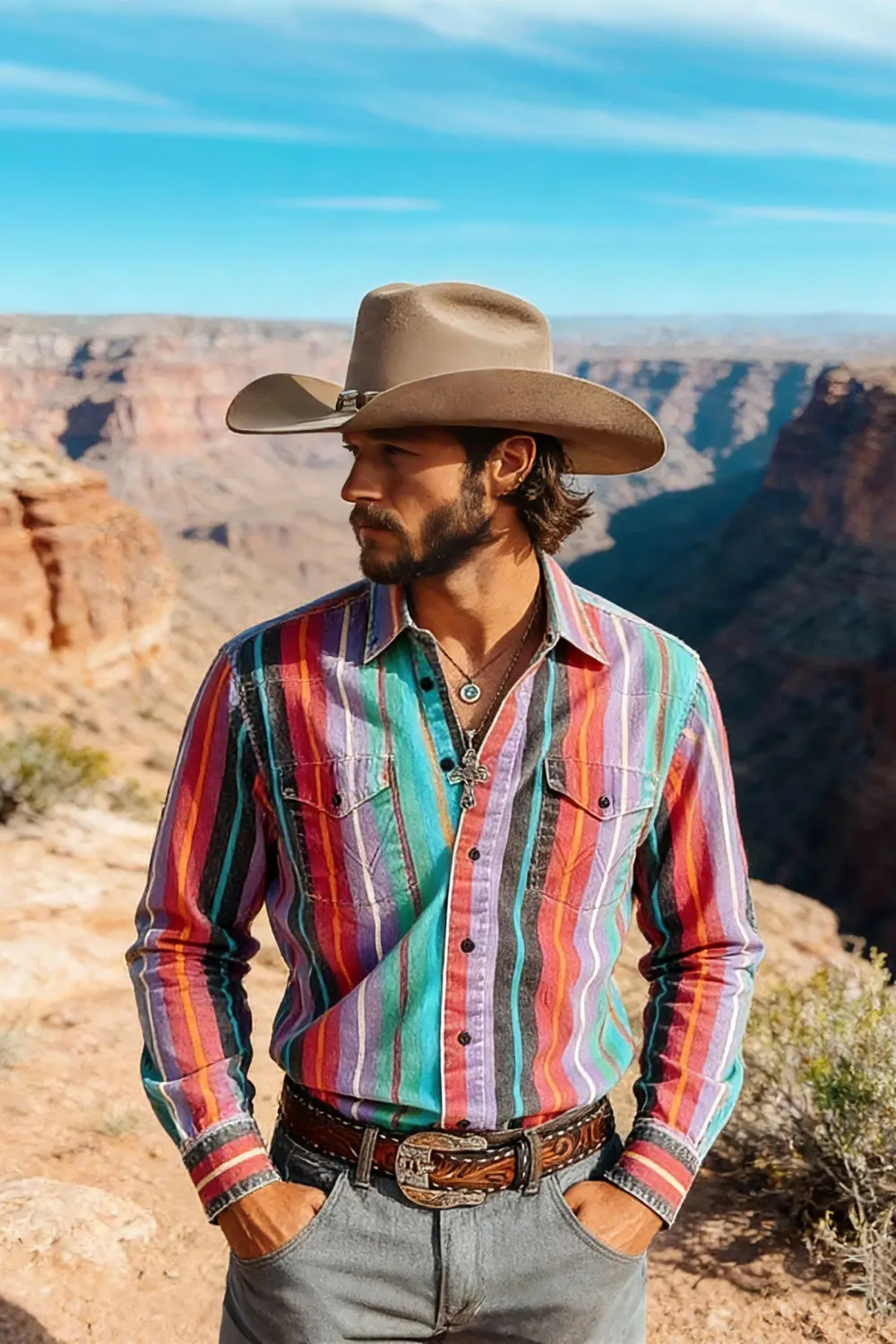 Vibrant Striped Western Shirt with Classic Cowboy Style