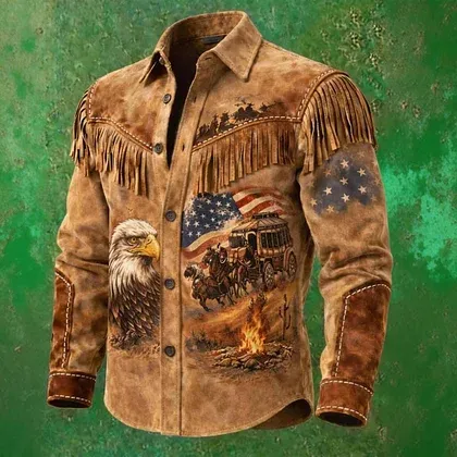 Vintage Campfire Eagle American Leather Fringe Western Jacket