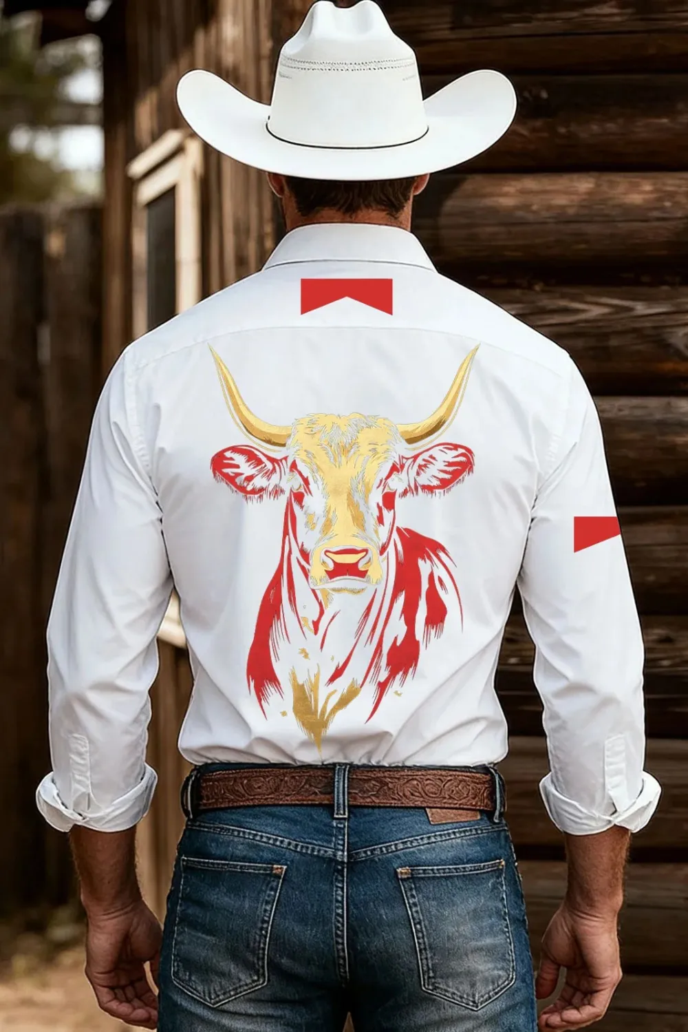 Western Bull Print Long Sleeve Shirt with Cowboy Hat Style