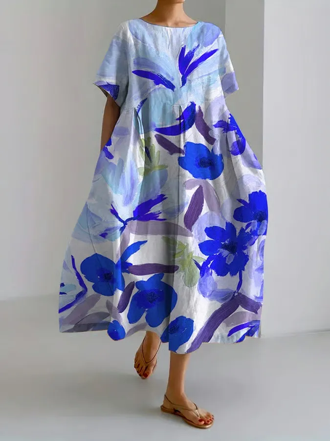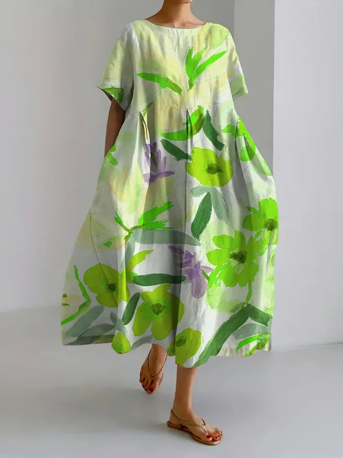 Women'S Retro Botanical Floral Design Printed Casual Loose Dress